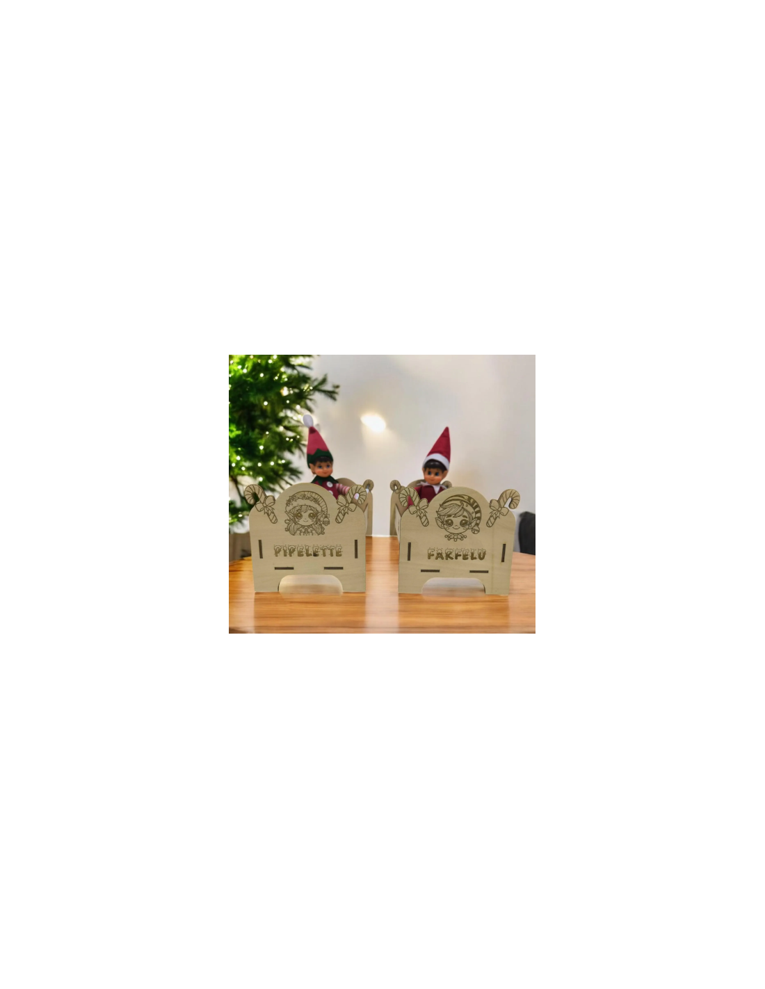 Offrez à votre lutin farceur un coin douillet avec ce lit simple en bois. Personnalisable avec son prénom et un motif gravé (fille ou garçon), c'est l'accessoire indispensable pour des mises en scène magiques et mémorables durant l'Avent.