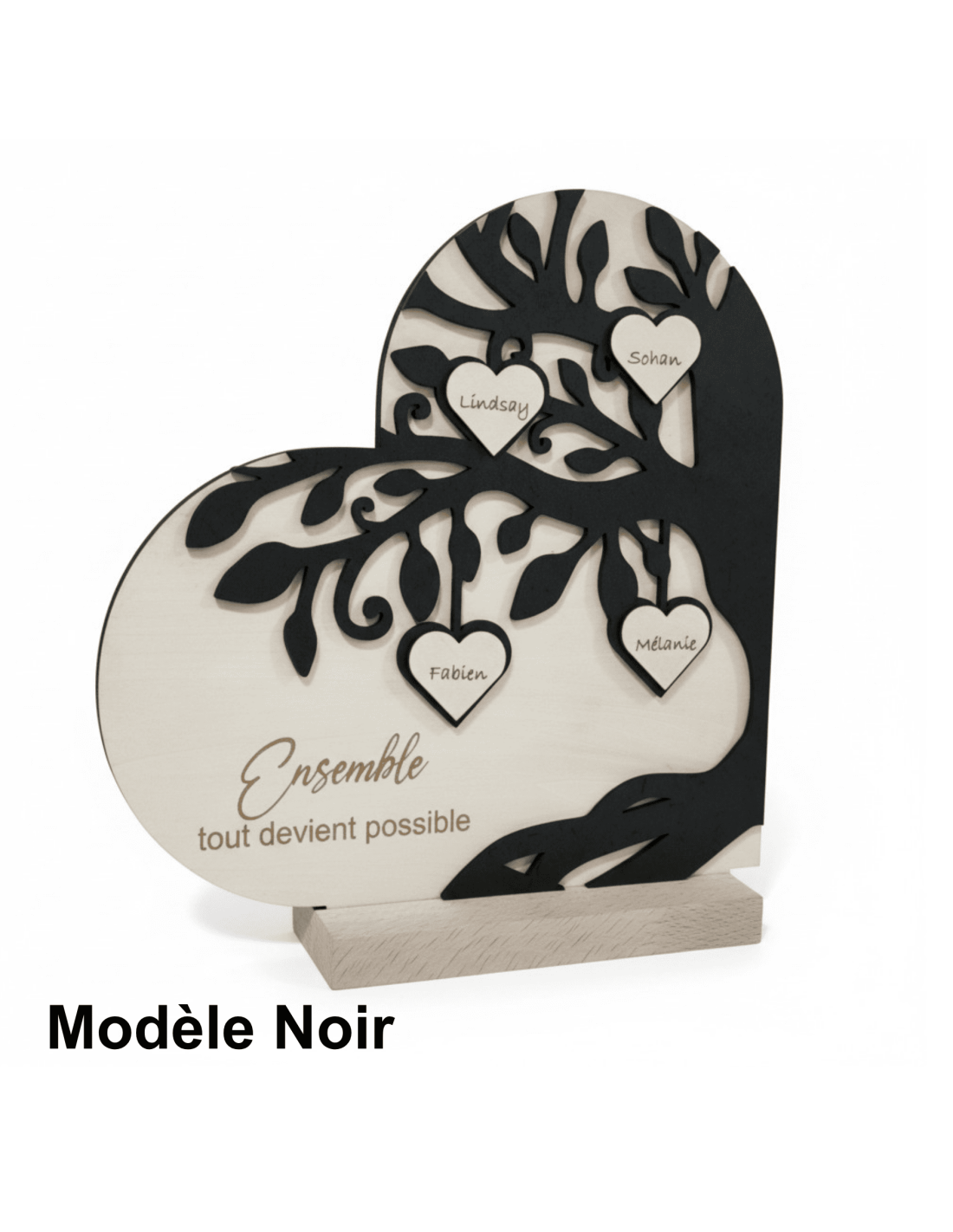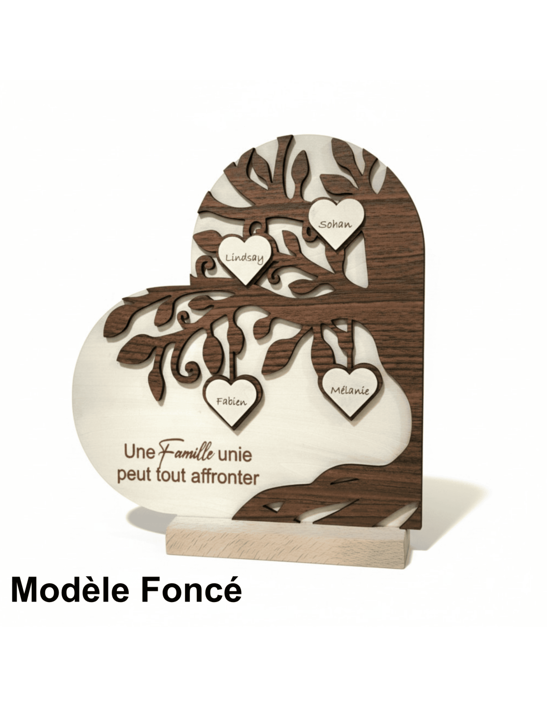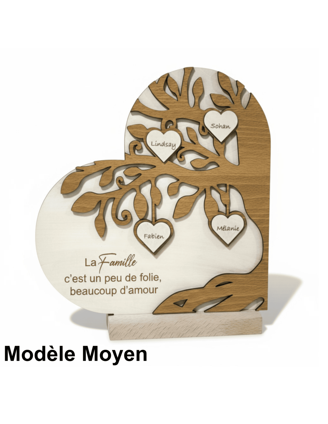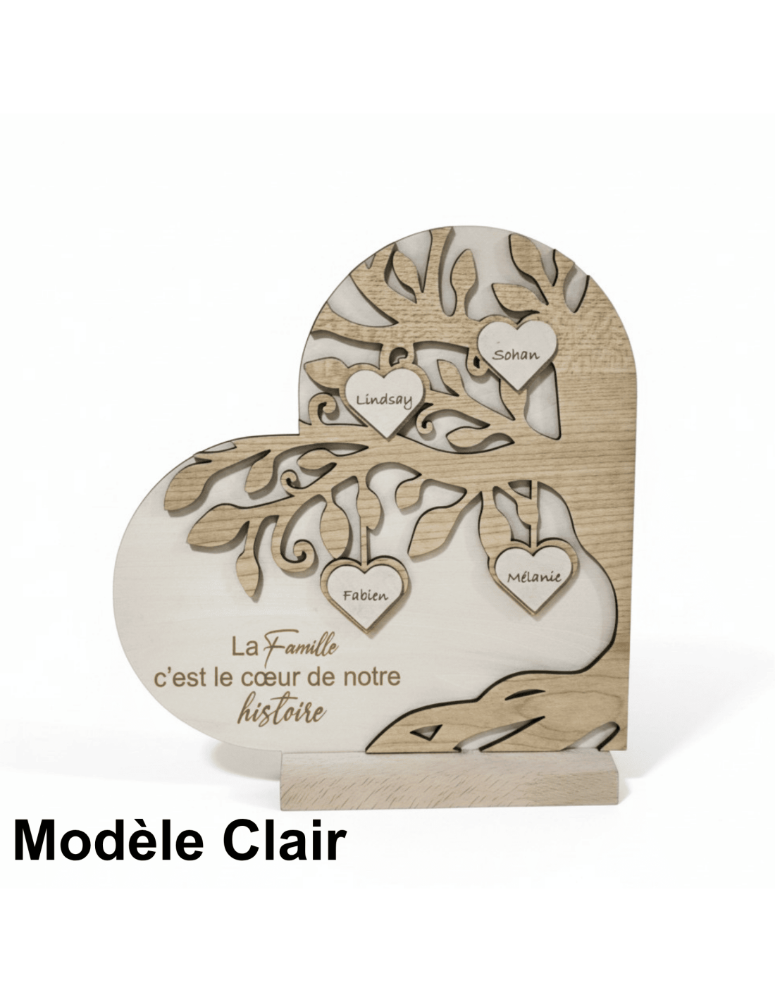 Arbre de Vie Cœur Bois Personnalisé Prénoms Famille