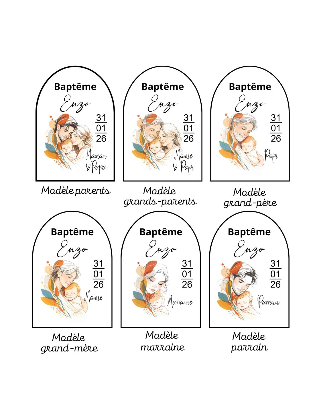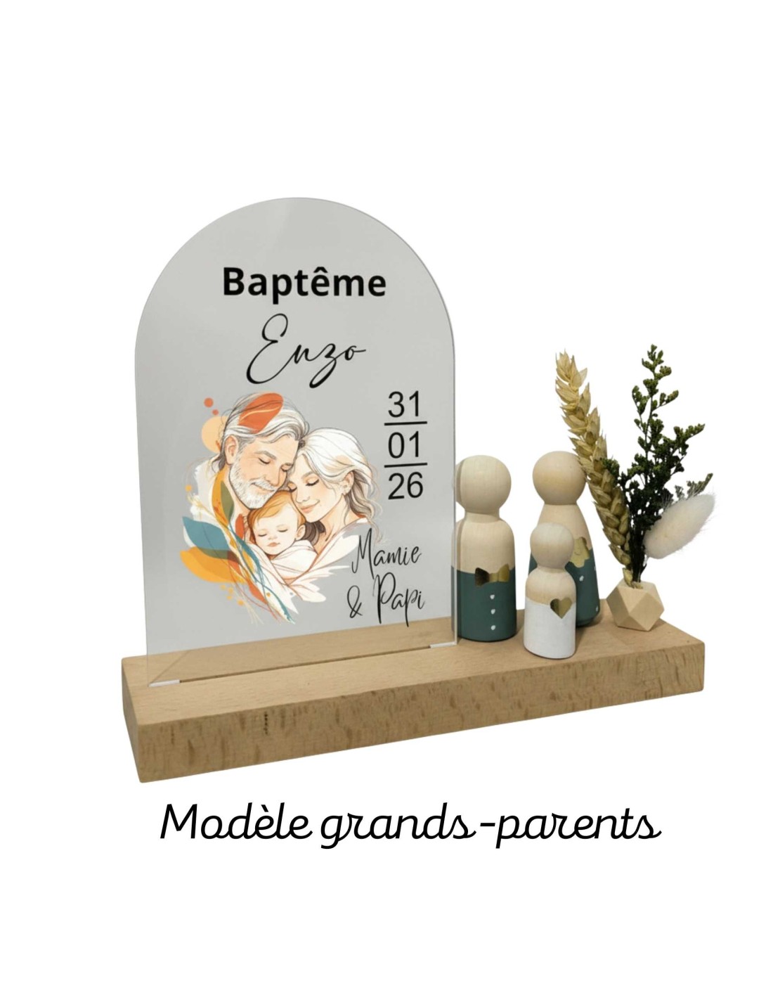 Cadeau de Baptême Personnalisé Parrain Marraine Grand-parents motif famille