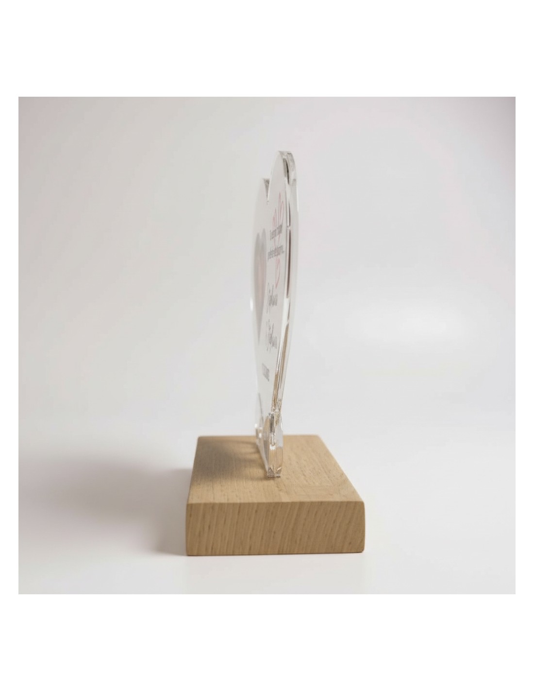 - Matières : acrylique transparent + socle en bois massif