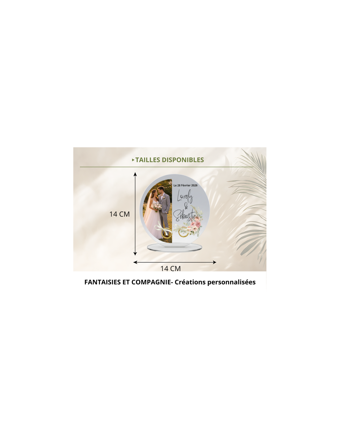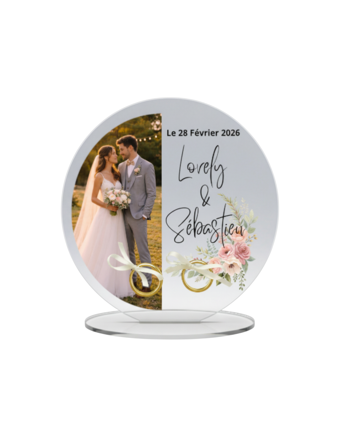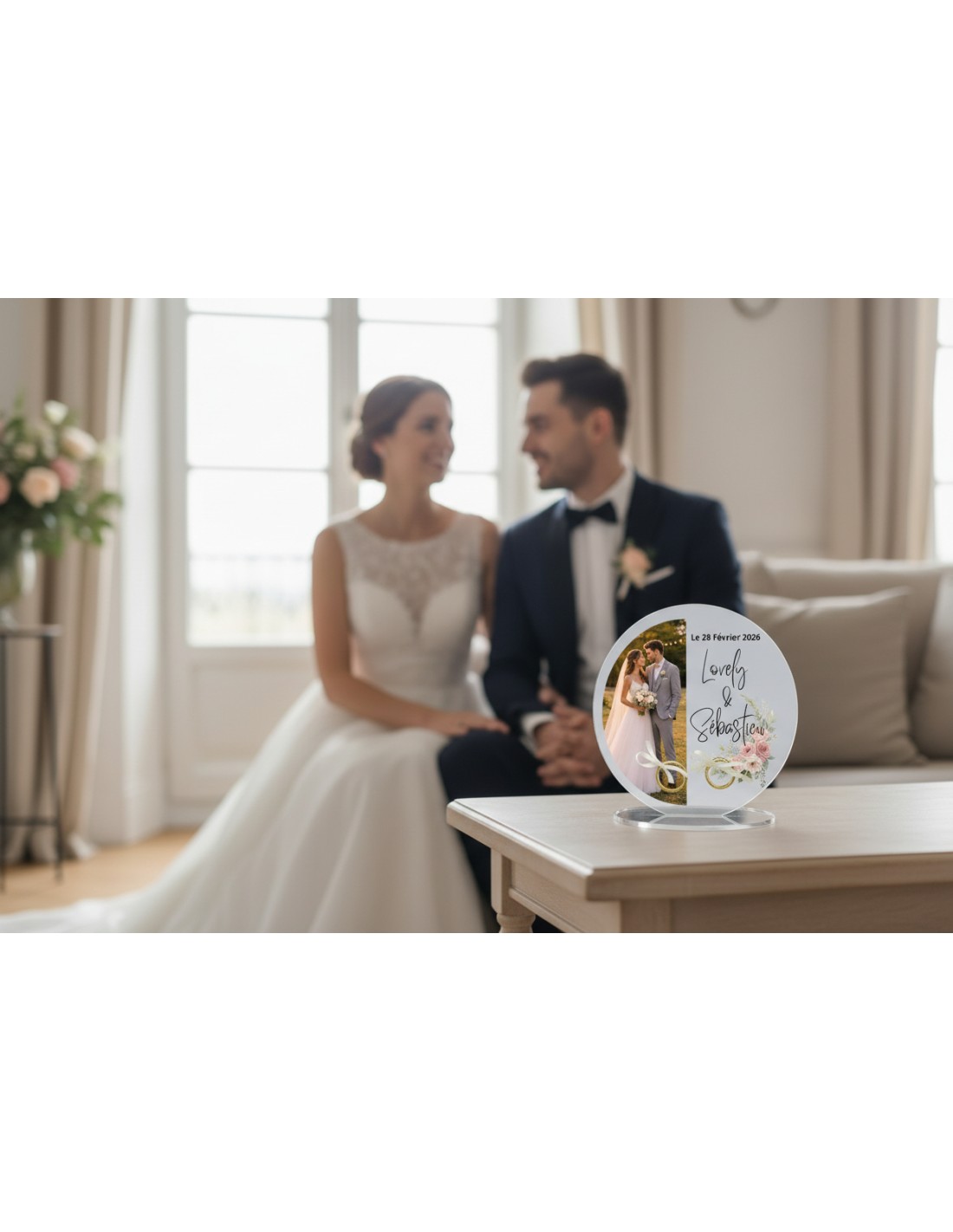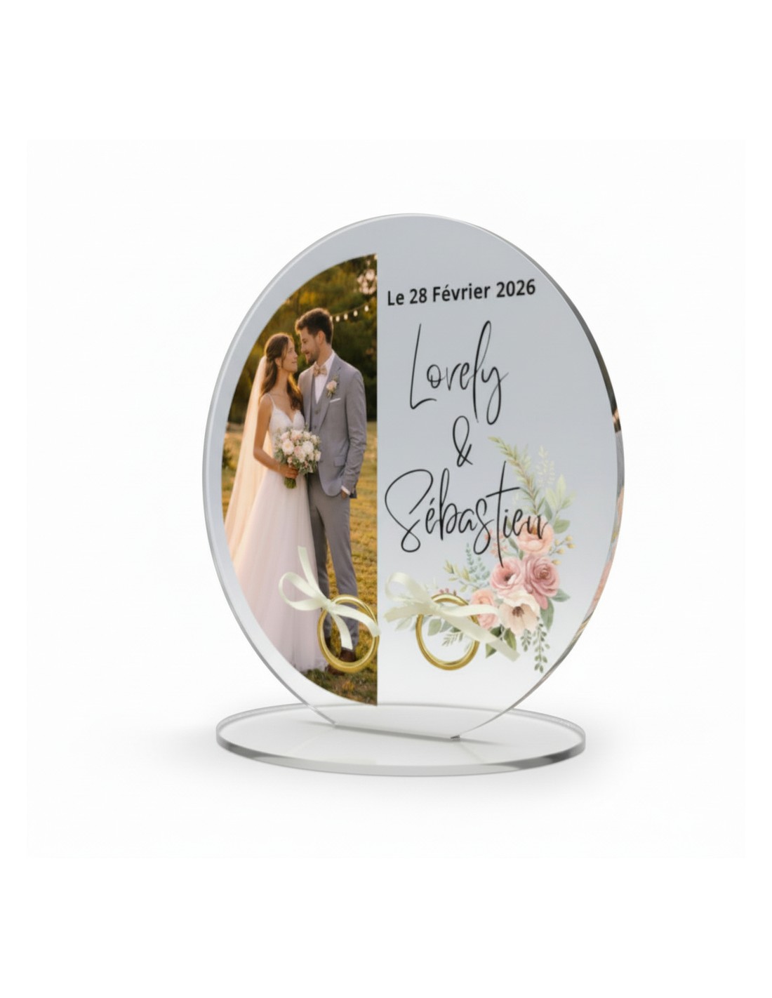 Support alliances mariage personnalisé en acrylique avec photo demi cercle