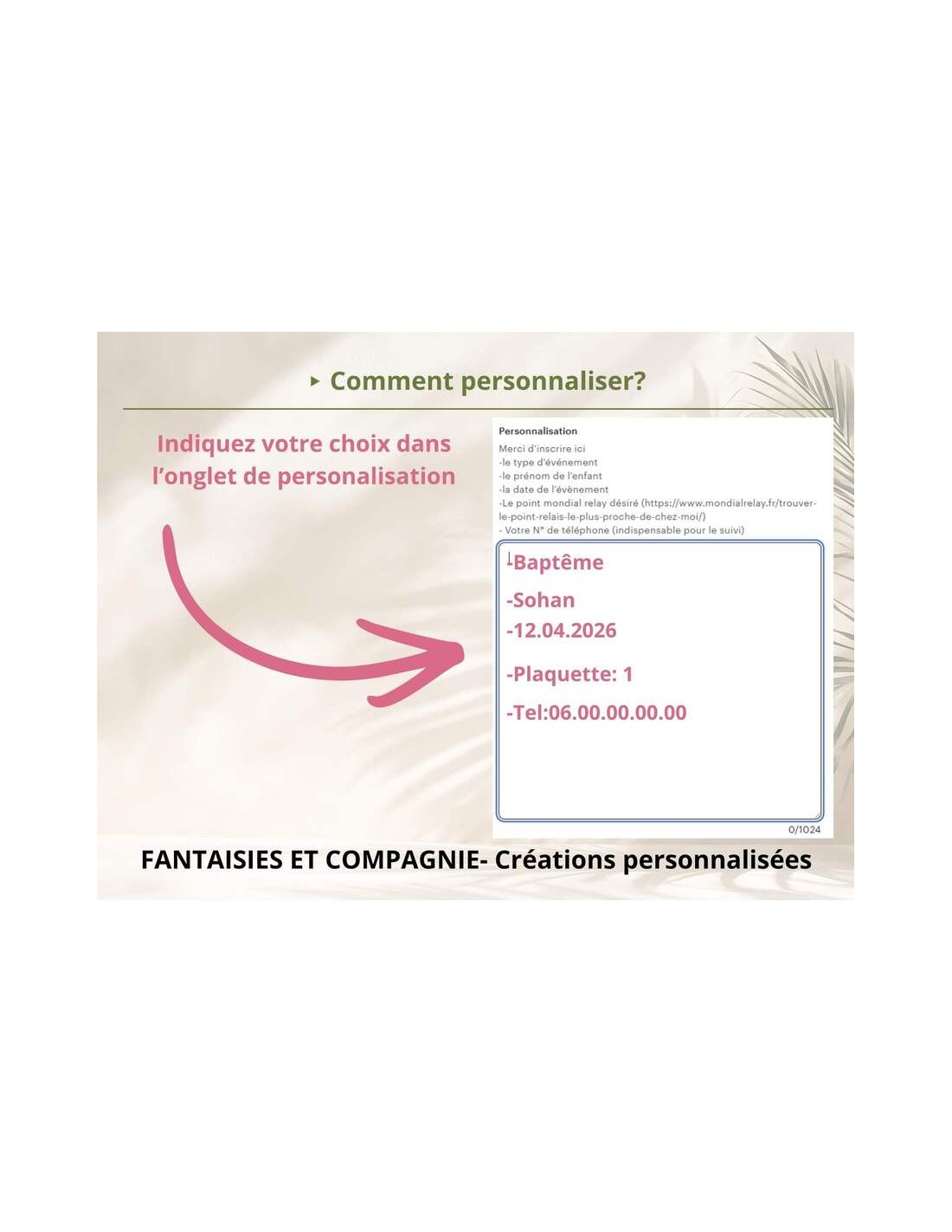 • Personnalisation : Prénom, date, message