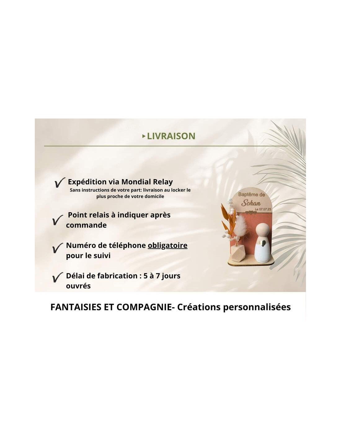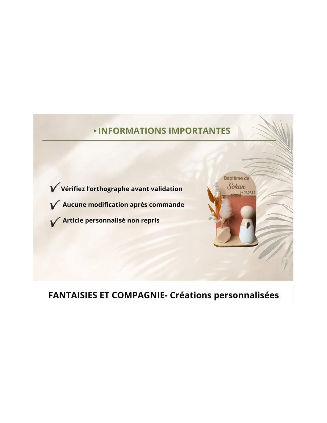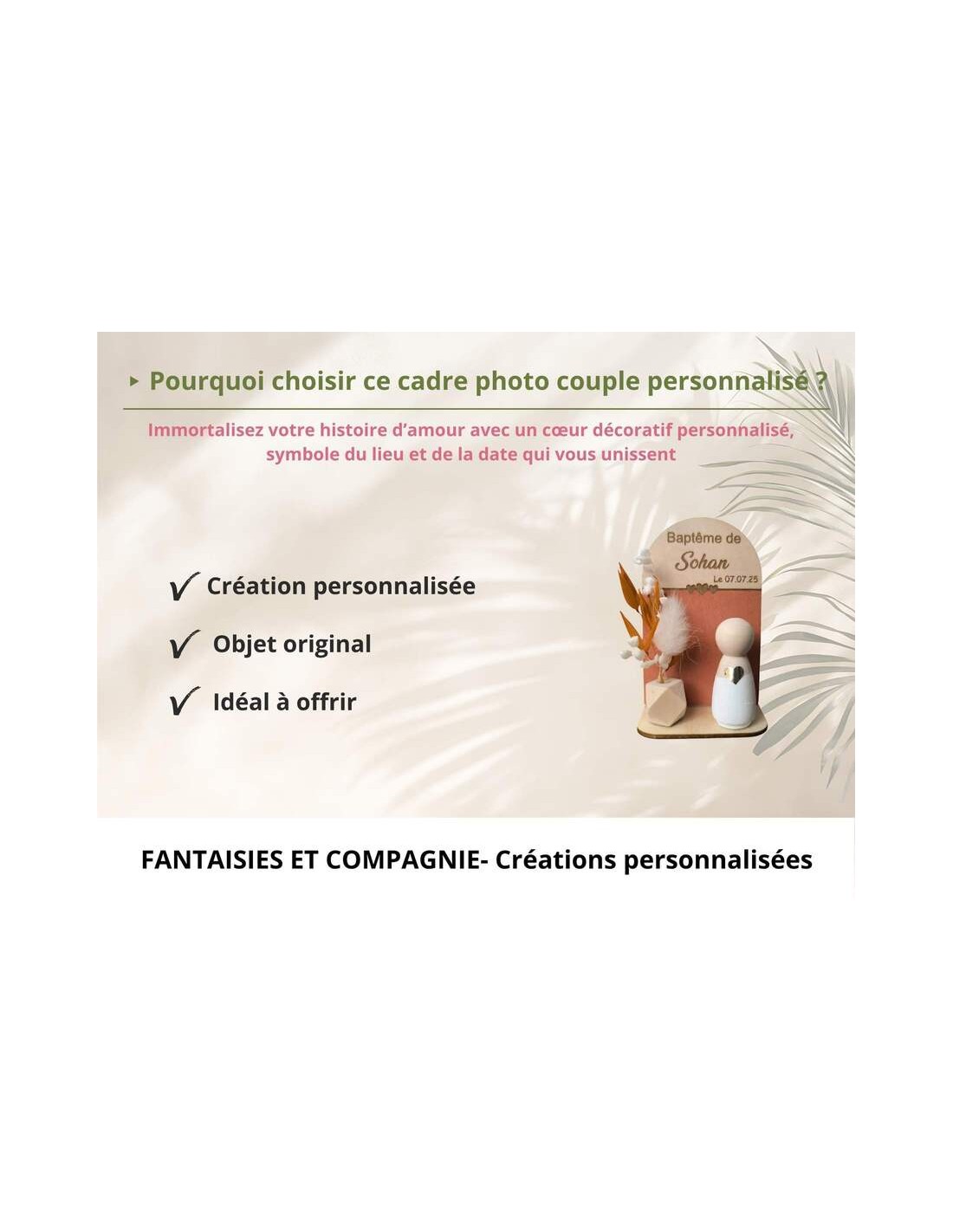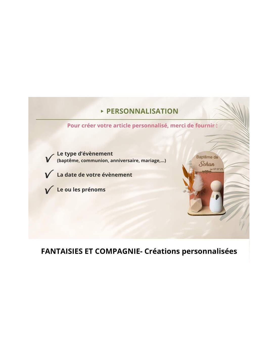 Fantaisies & Compagnie est une marque française spécialisée dans la création de cadeaux personnalisés pour les moments importants de la vie : baptême, naissance, mariage et occasions spéciales.