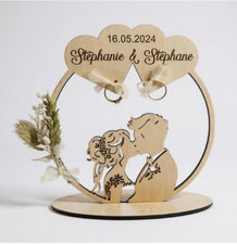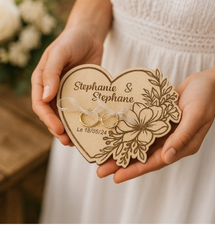Le moment de l'échange des vœux est sans doute le plus émouvant de la journée. Pour sublimer la présentation de vos alliances, le Présentoir d'alliances en bois personnalisé est une option romantique et unique. Oubliez le coussin traditionnel et optez pour cet écrin délicat qui mettra en valeur vos anneaux.