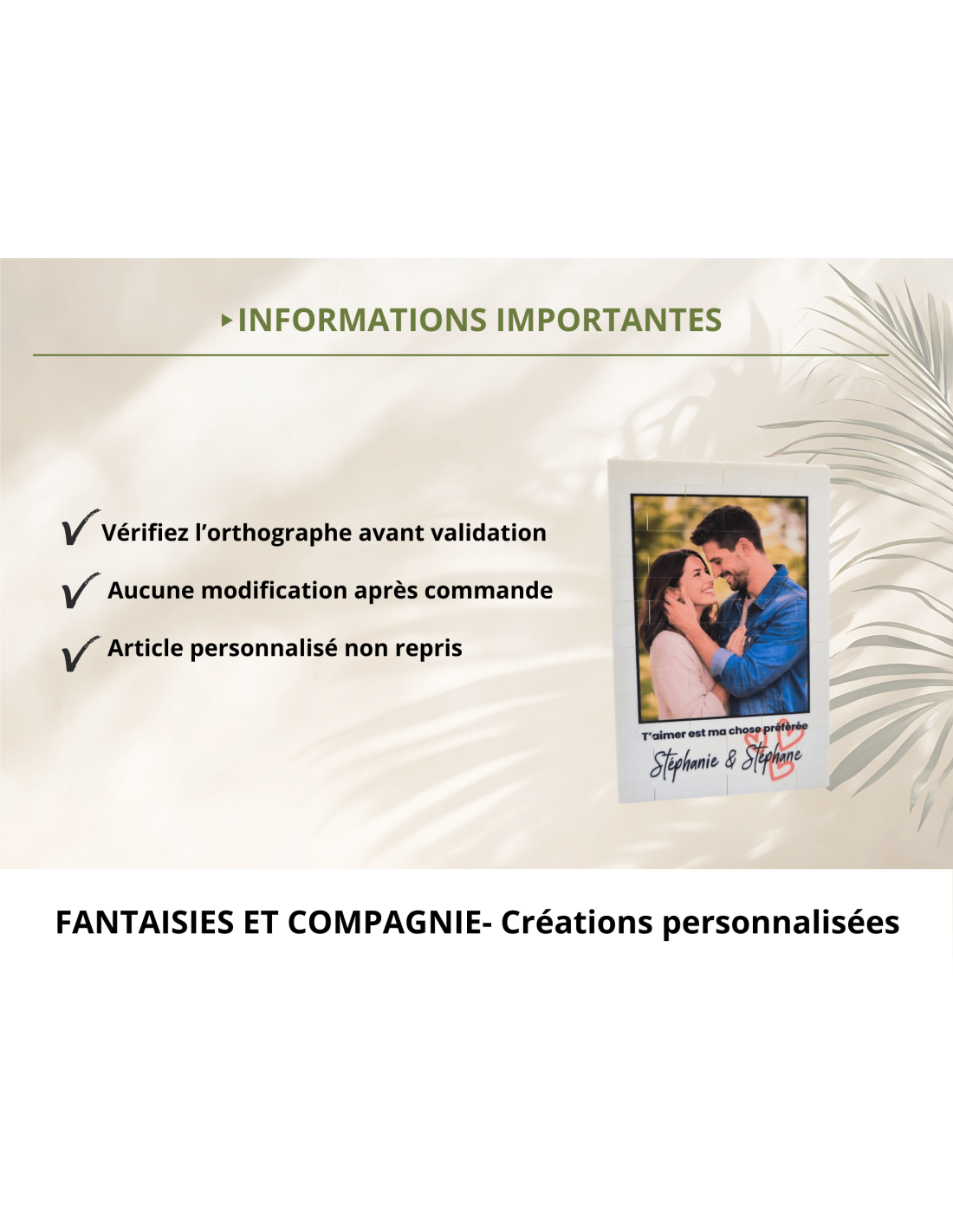 Merci de vérifier attentivement l’orthographe, les couleurs et les informations transmises avant validation de votre commande.
