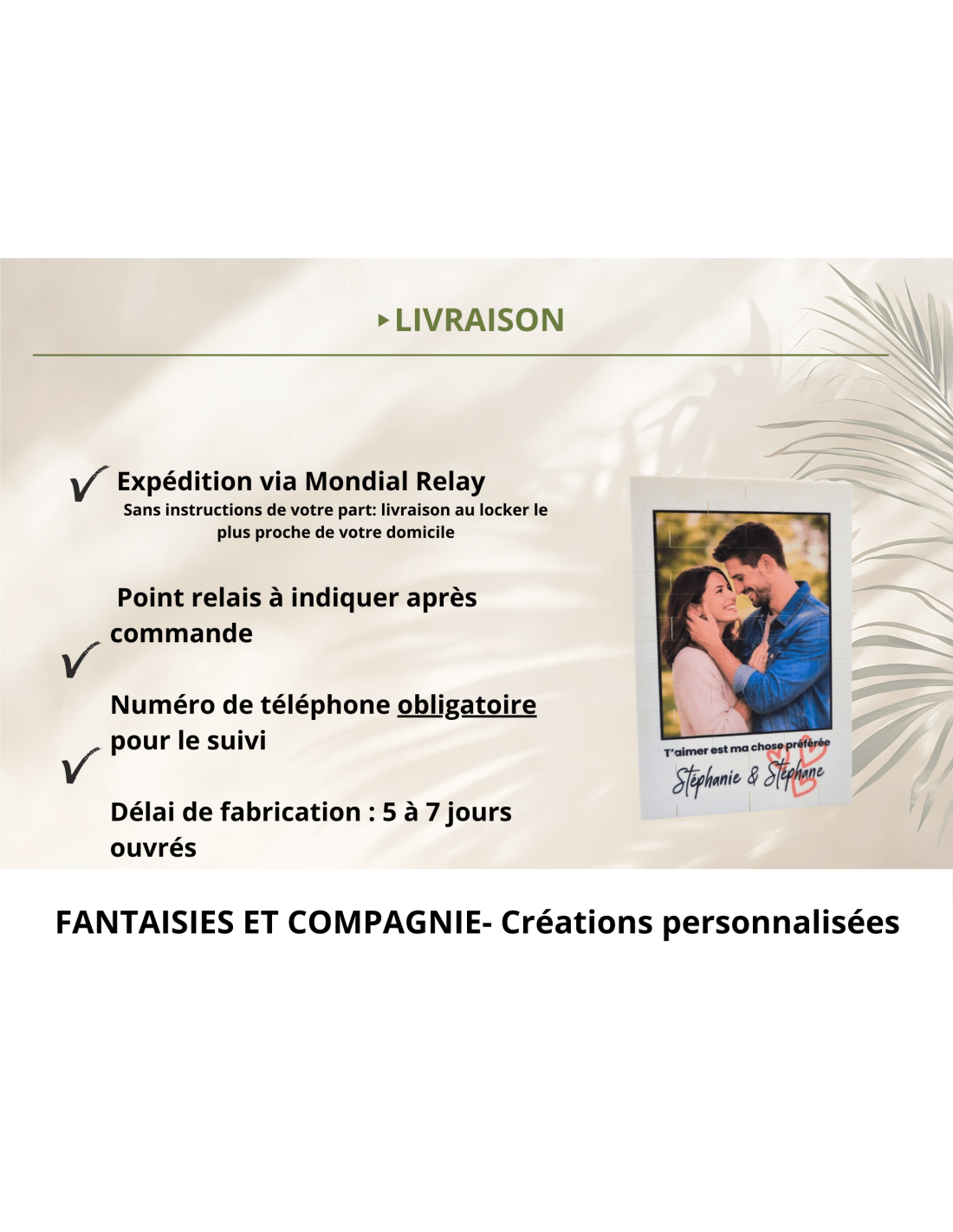 - Personnalisation : photo, prénoms, phrase